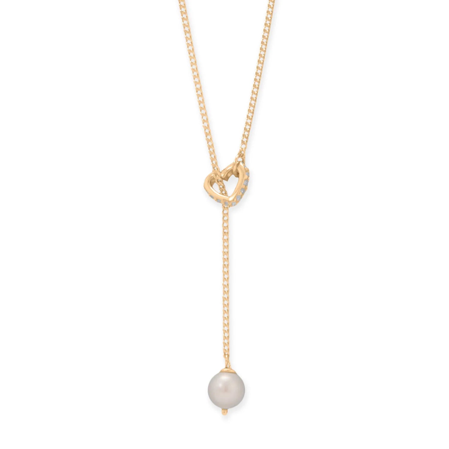 The Love Pearl Lariat is a refined take on romantic jewelry. Featuring a delicate heart detail accented with subtle CZ sparkle and finished with a cultured freshwater pearl drop, this piece is designed to drape effortlessly and flatter every neckline. The lariat style creates a soft, elongating line, while the pearl adds timeless elegance. Finished in 14K gold plating, this necklace blends modern femininity with classic charm. Wear it alone as a statement or layer it for an elevated everyday look.