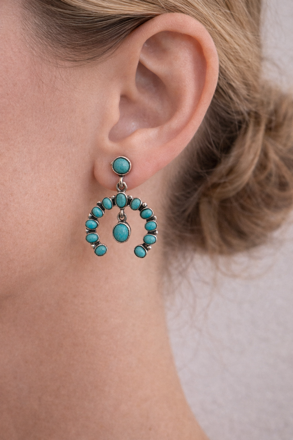 The Sierra Crescent Drops are bold, handcrafted statement earrings, featuring vibrant Kingman turquoise set in oxidized sterling silver. With a cascading crescent design and rich Southwestern character, these earrings bring movement, texture, and undeniable presence to any look. They're the kind of earrings you build an outfit around.